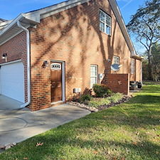 This house washing and driveway washing project in Suffolk Va was requested at the perfect time. Despite having been cleaned less than two years ago some organic growth was beginning to grow in shaded areas. Cleaning your house before it gets over run with algea is a great decision for maintaining your homes appearance. More frequent washing requires less time and chemical reducing cost and possible damage to siding, motar, windows and doors. After a first house washing we suggest a maintenance wash every 18 to 24 months for the best long term results.